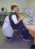 Concern: Look at the picture on the left. See how the student is leaning forward in the chair so that his feet can touch the ground. He is right that it is important to have his feet supported, but he is forgetting about his back.