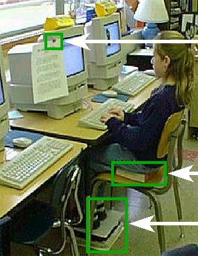 It is a common belief that special ergonomic equipment is required to provide adjustability. You can create the best ergonomic setup on a non-existing or very small budget. Our goal is to make students as comfortable as possible and make it easy for them to develop good work habits. If students learn, at an early age, how to make a workstation fit them, they will make similar adjustments later in life.